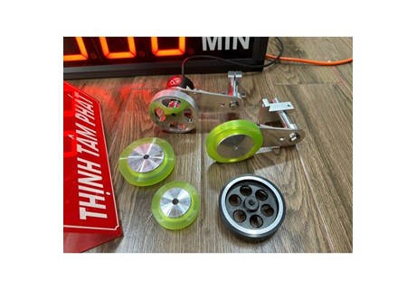 - Trục kim loại ở giữa dùng gắn với động cơ DC hoặc motor encoder, truyền chuyển động quay.